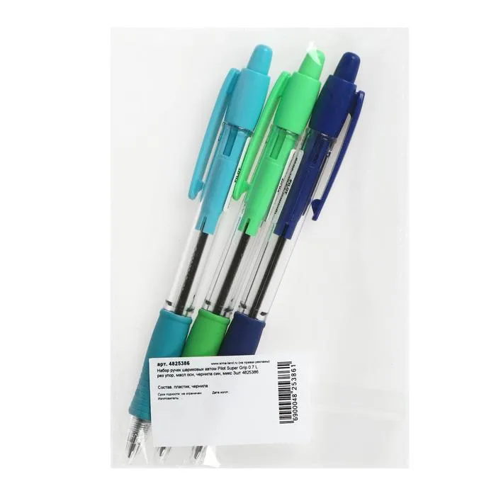 Набор шариковых ручек Pilot Super Grip 0.7 L, автоматические, резиновый упор, масляная основа, чернила синие — Характеристики