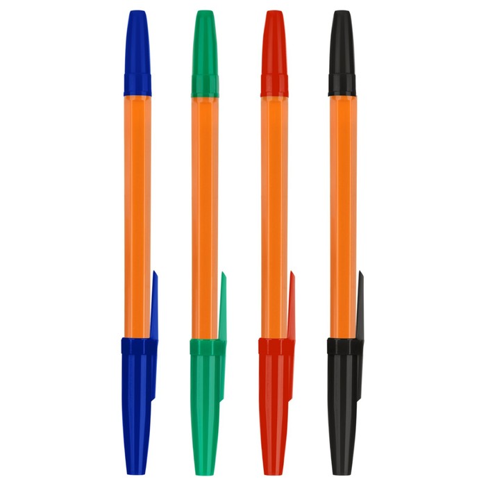 Набор шариковых ручек Стамм "Оптима" 4 штуки, 4 цвета, узел 1,0 мм, оранжевый корпус, европодвес — Характеристики