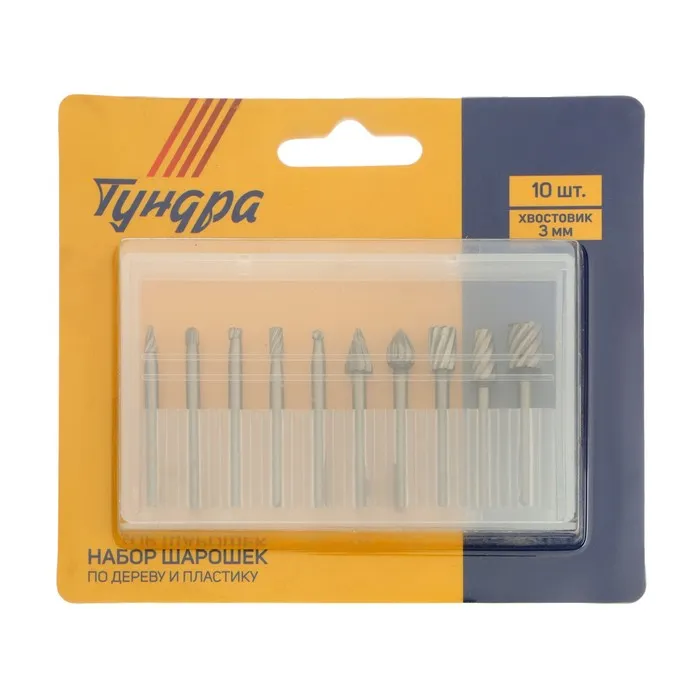Набор шарошек по дереву и пластику ТУНДРА, диаметр хвостовика 3 мм, 10 шт. — Характеристики