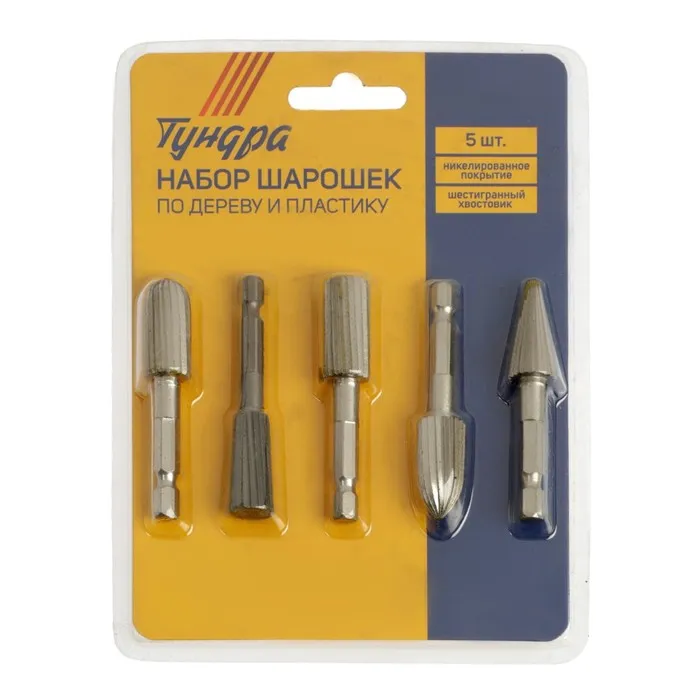 Набор шарошек по дереву и пластику ТУНДРА, никелированное покрытие, шстигр. хвостовик, 5 шт. — Характеристики
