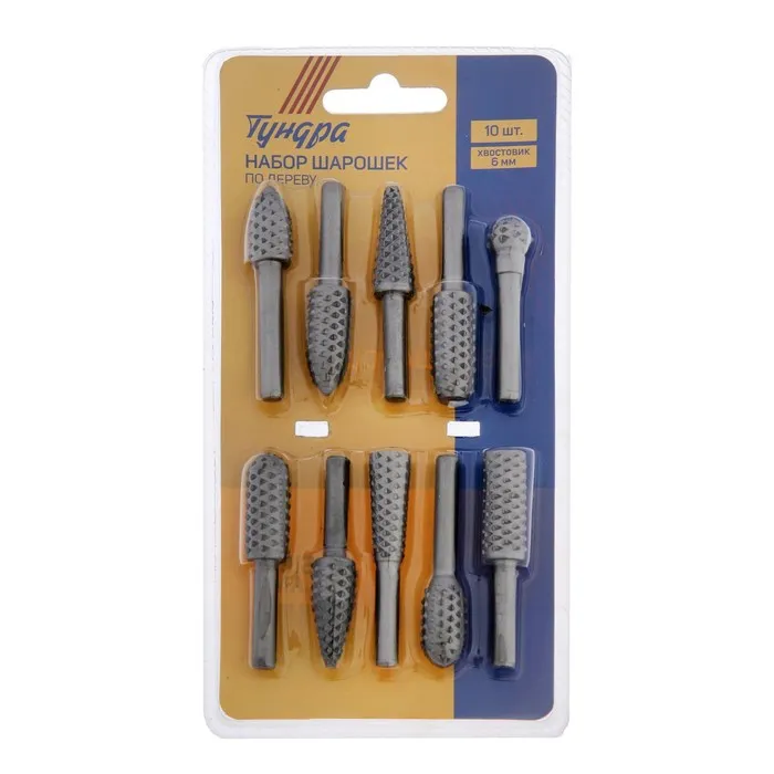 Набор шарошек по дереву ТУНДРА, диаметр хвостовика 6 мм, 10 шт. — Характеристики