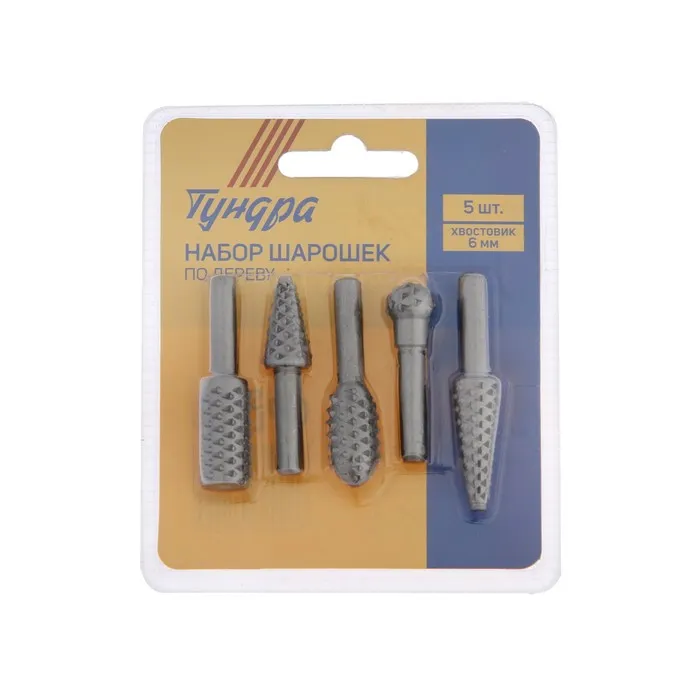 Набор шарошек по дереву ТУНДРА, диаметр хвостовика 6 мм, 5 шт. — Характеристики