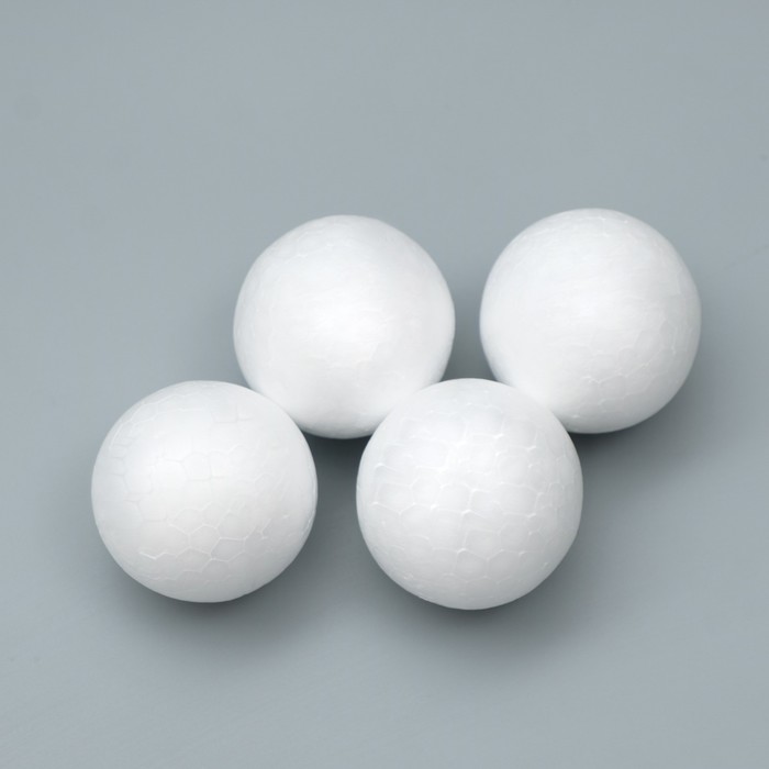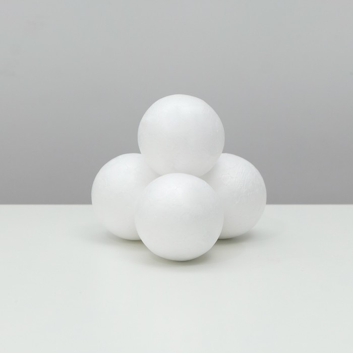 Набор шаров из пенопласта, 5 см, 4 шт - удобный и популярный атрибут оформления праздников и квартир у дизайнеров, флористов и любителей декоративно - прикладного творчества. Изделие легко поддается обработке, окрашивается акриловыми красками на водной основе. Благодаря свойствам материала на него легко приклеить, приколоть английской булавкой или зубочисткой необходимый декоративный материал. Оформляется цветами, лентами, бусами, блестками.