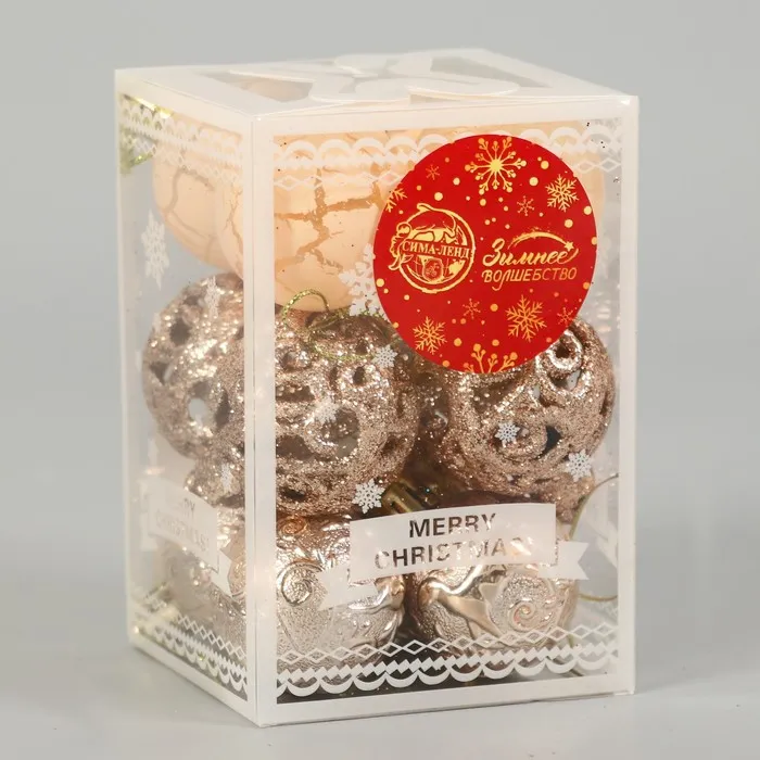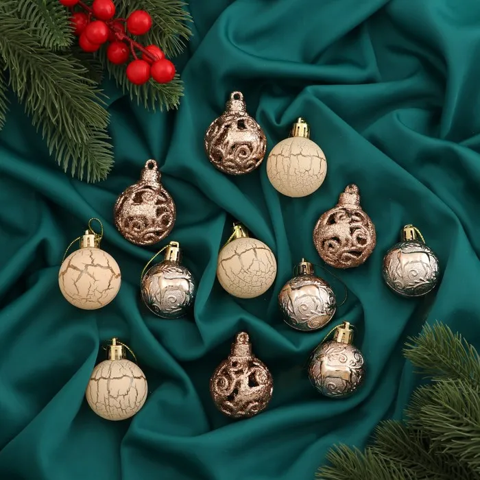 Набор шаров пластик d-4 см, 12 шт "Мелодия" орнамент, золото — Характеристики