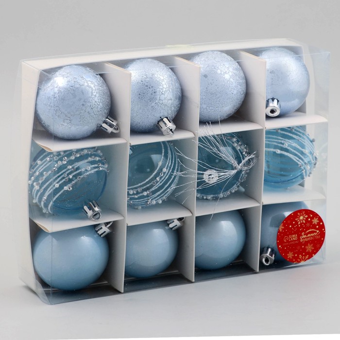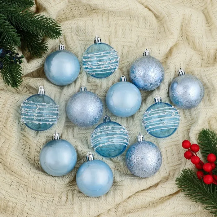 Набор шаров пластик d-6 см, 12 шт "Сказочные узоры" орбита, голубой — Характеристики