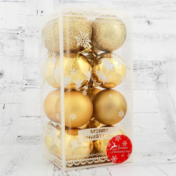 Набор шаров пластик d-6 см, 16 шт "Грациозо" золото — Характеристики