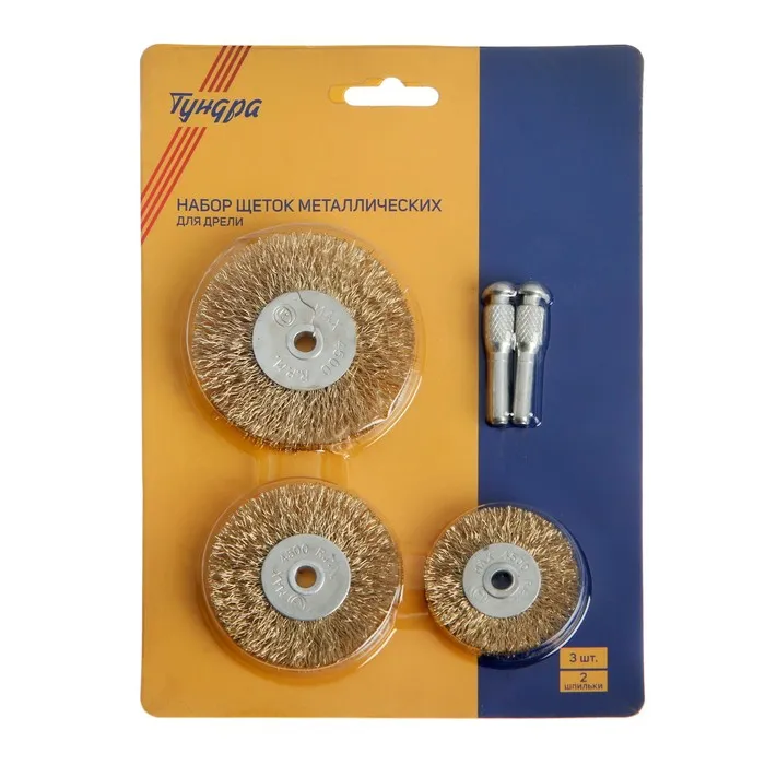 Набор щеток металлических для дрели ТУНДРА, плоские 50-63-75 мм, 3 шт. + 2 шпильки — Характеристики