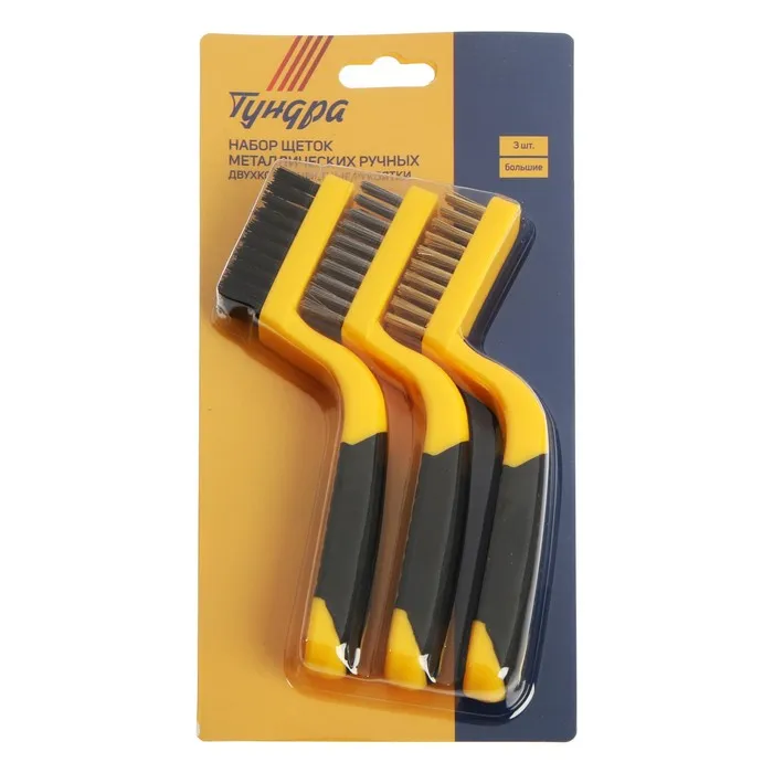 Набор щеток металлических ручных ТУНДРА, двухкомпонентные рукоятки, большие, 3 шт.