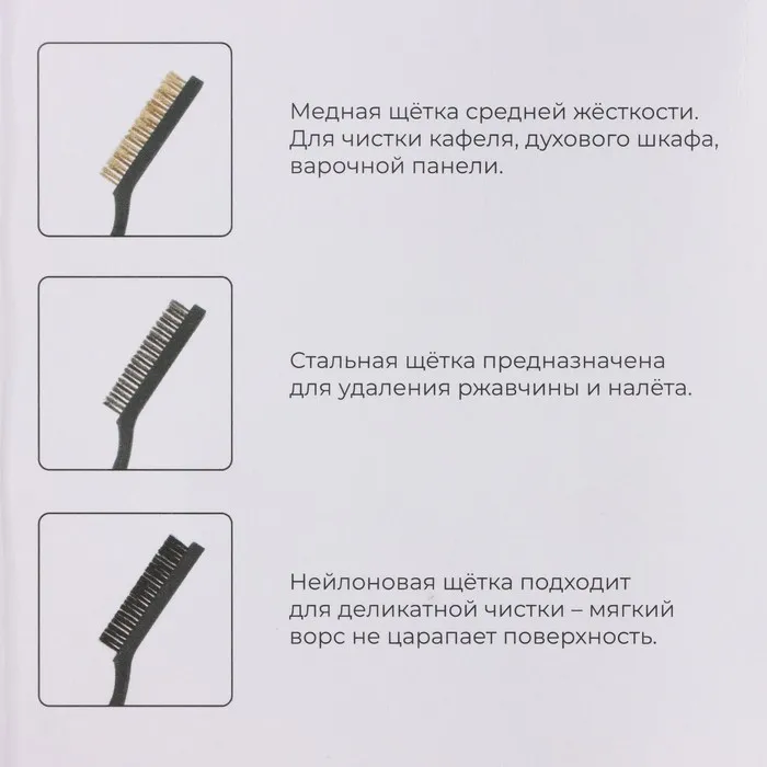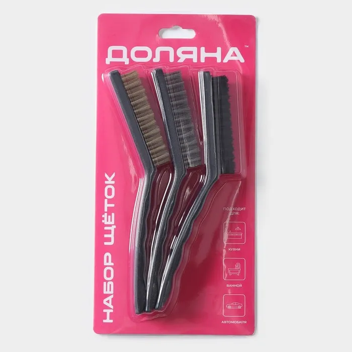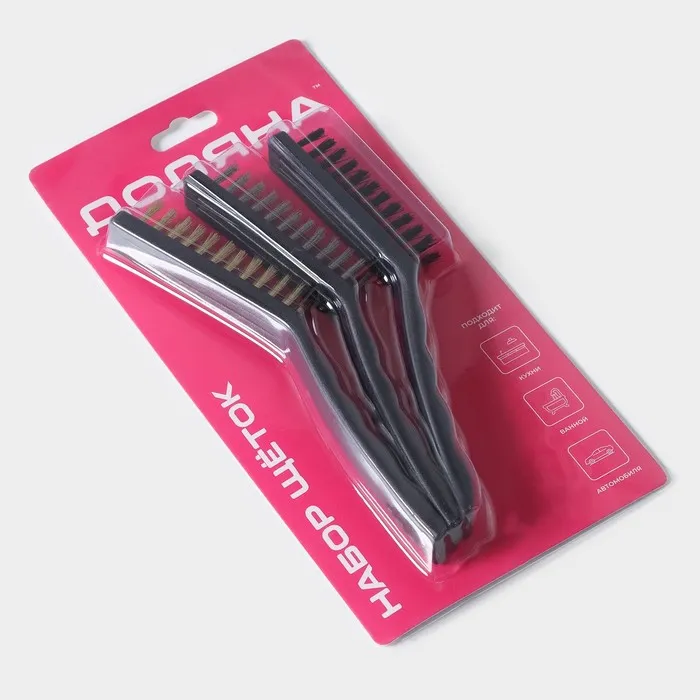 Набор щёток универсальных Доляна, 3 шт, 21×2×2,5 см, рабочая часть 8,5×1,5×1,5 см, цвет чёрный — Характеристики
