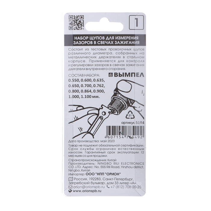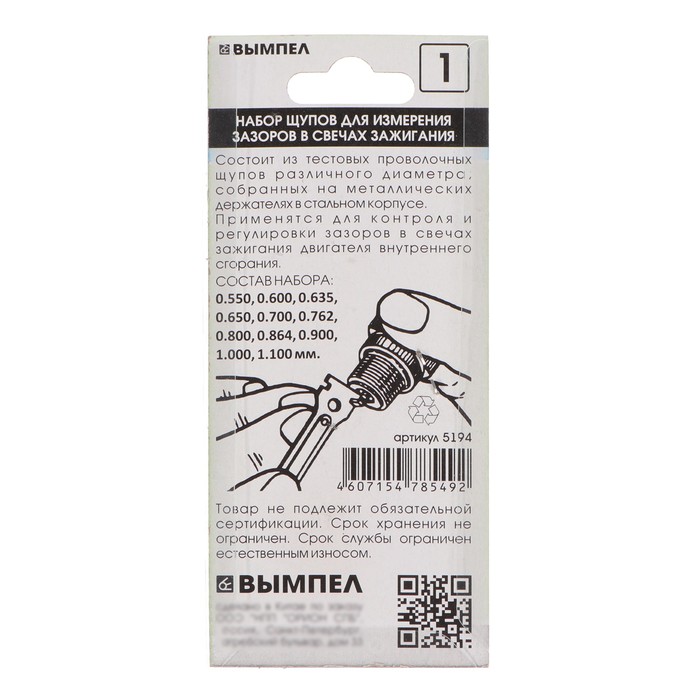 Набор щупов Вымпел №1, для свечей зажигания, 11 щупов, 0.55-1.1 мм — Характеристики