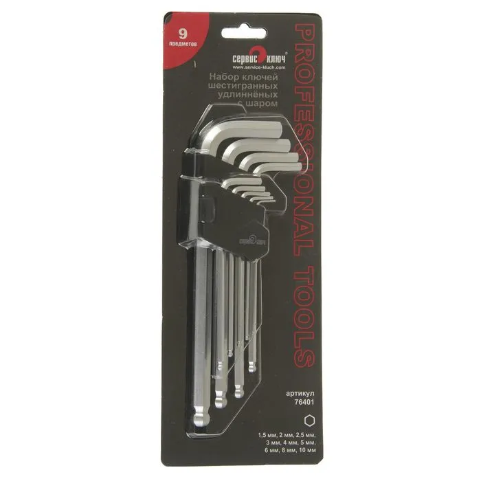 Набор шестигранников «СЕРВИС КЛЮЧ», Proffi, 9 пр., удлиненные — Характеристики