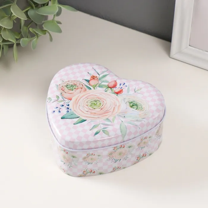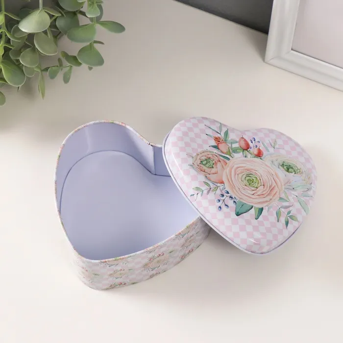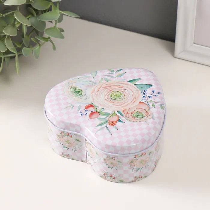 Набор шкатулок для хранения мелочей, украшений «Сердце. Нежность цветов», 3 шт., металл, 10.5×12.6×5 см — Характеристики