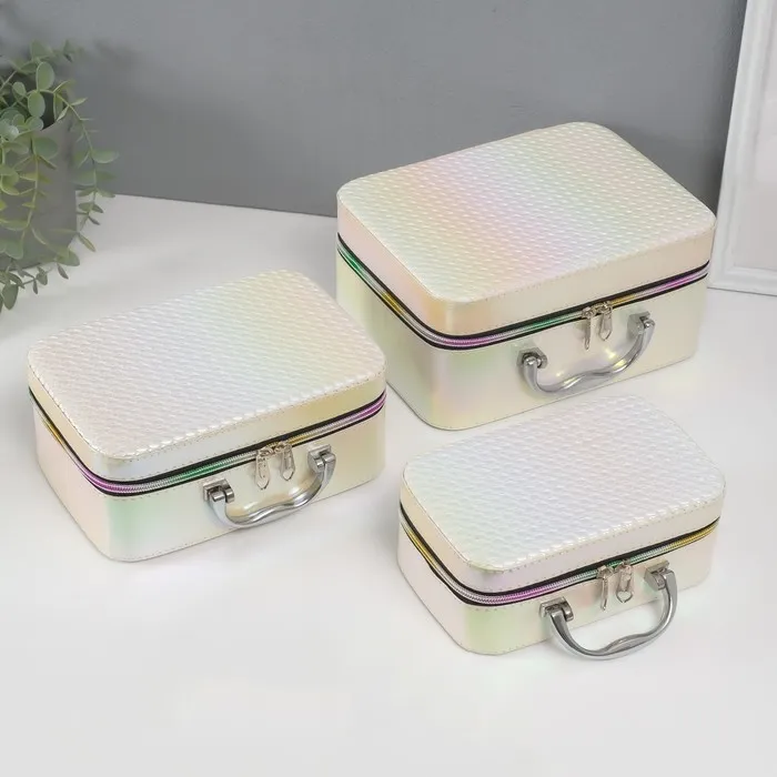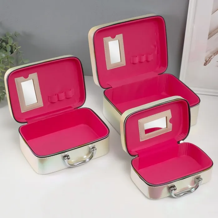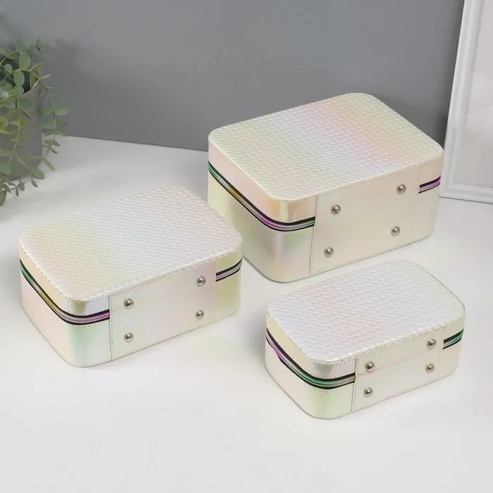 Набор шкатулок для украшений с зеркалом «Плетение», 3 шт., искусственная кожа, бежевая — Характеристики