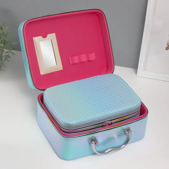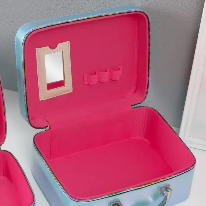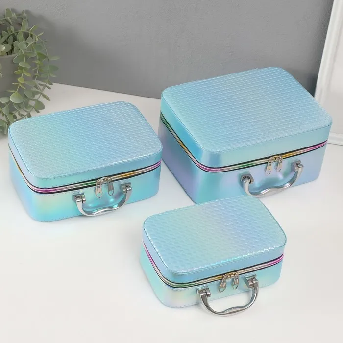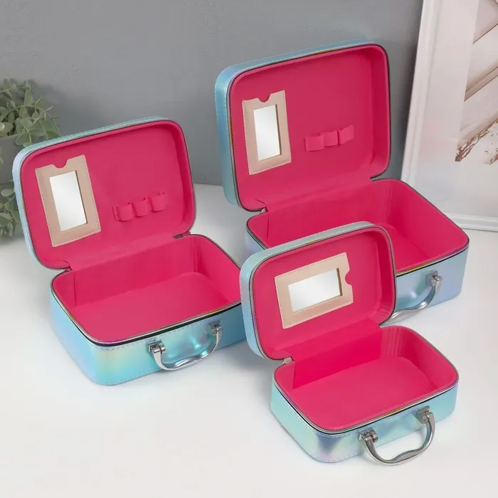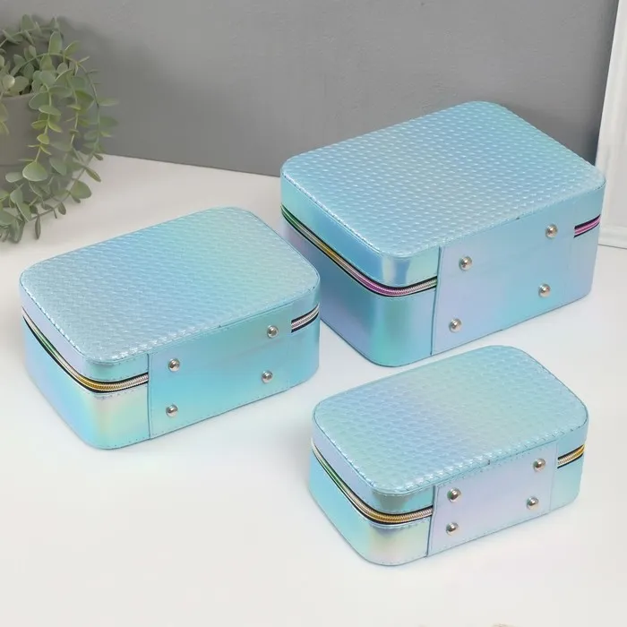 Набор шкатулок для украшений с зеркалом «Плетение», 3 шт., искусственная кожа, голубая — Характеристики