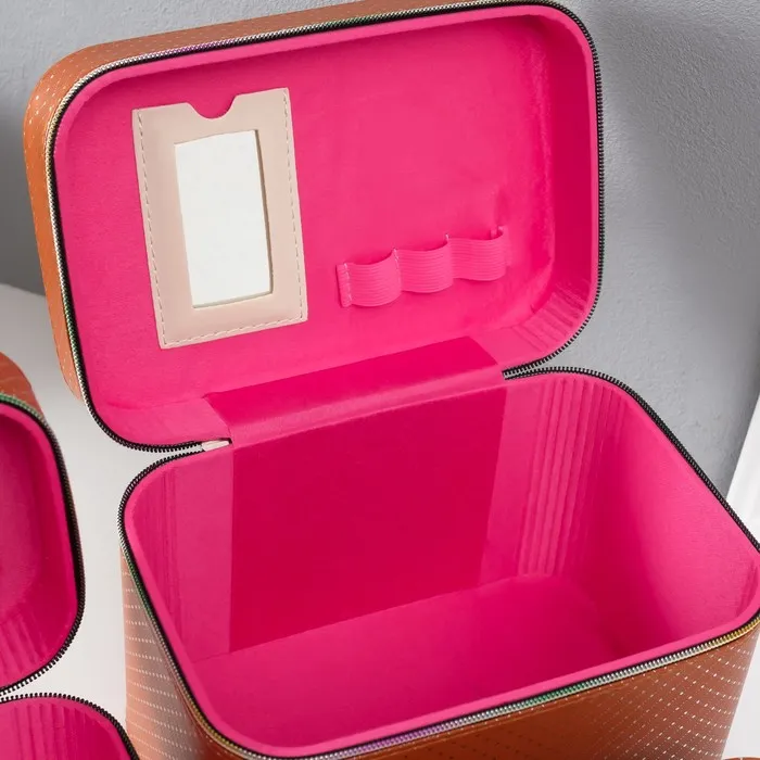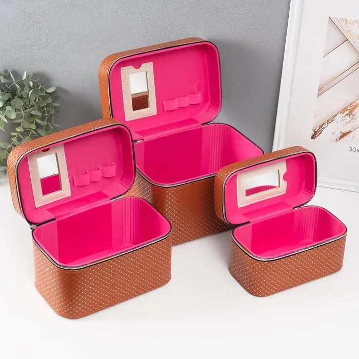 Набор шкатулок для украшений с зеркалом «Ромбы», 3 шт., искусственная кожа, охра — Характеристики