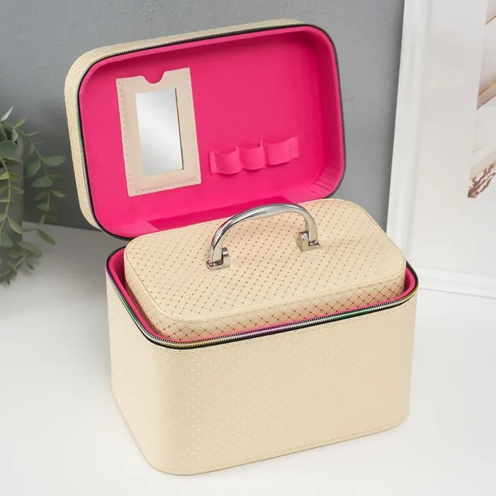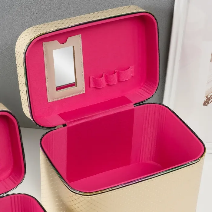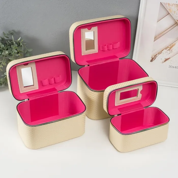 Набор шкатулок для украшений с зеркалом «Ромбы», 3 шт., искусственная кожа, сливки — Характеристики