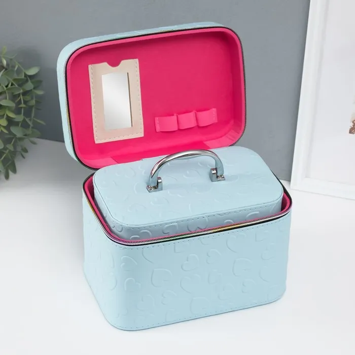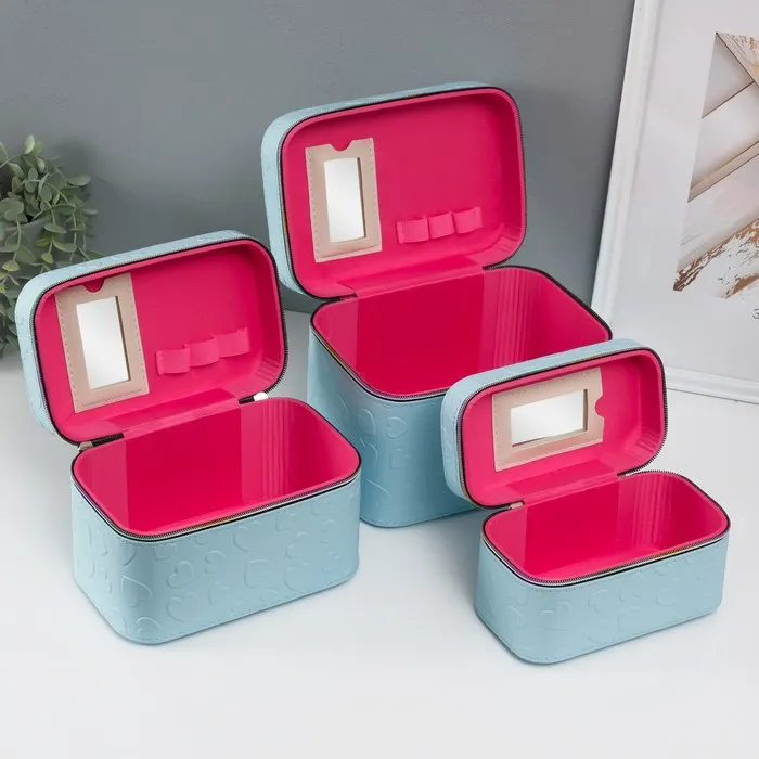 Набор шкатулок для украшений с зеркалом «Сердца», 3 шт., искусственная кожа, св. голубая — Характеристики
