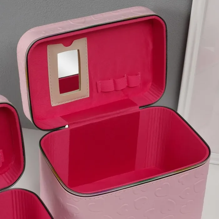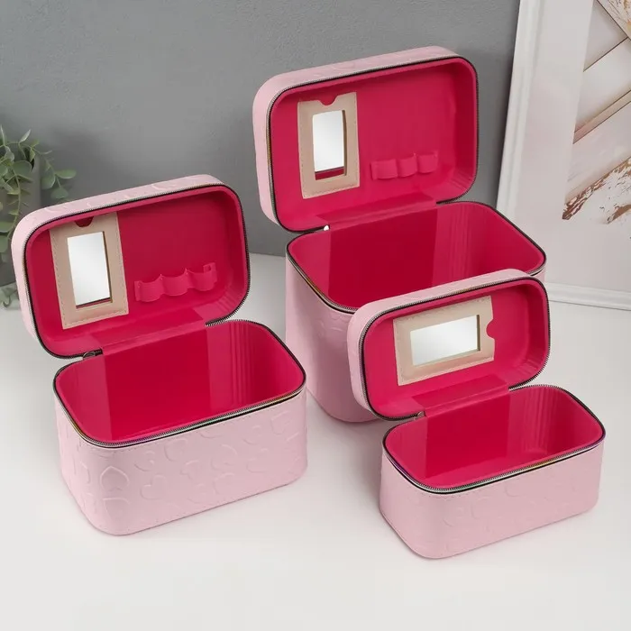 Набор шкатулок для украшений с зеркалом «Сердца», 3 шт., искусственная кожа, св. розовая — Характеристики