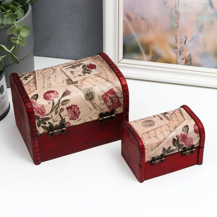 Шкатулка – замечательная вещь, которая пользуется популярностью у любой женщины. Ведь это не только практично, но и красиво. Раньше считалось, что у каждой леди должна быть шкатулка и, причём чем их больше, тем лучше. Это говорило о статусе и женственности. Ведь в них дамы обычно хранят свои украшения и драгоценности. Поэтому представляем набор шкатулок для украшений «Сундучок. Цветочное панно», дерево, 2 шт., пусть они заполнятся Вашими сокровищами, изысканной бижутерией, бриллиантами в тысячи карат.