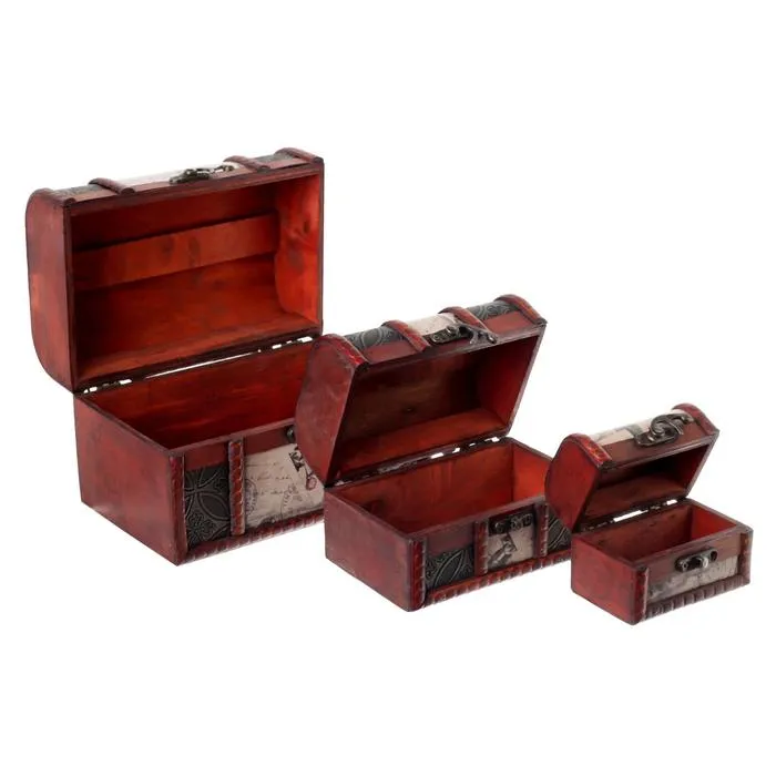 Набор шкатулок для украшений «Сундук. Экспедиция», для мелочи, 3 шт.: 9×6×7 см; 14×9.5×9 см; 19×13×13 см, дерево — Характеристики