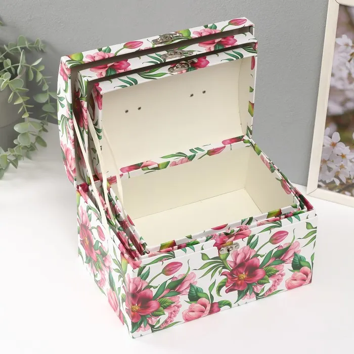 Набор шкатулок для украшений «Сундук. Яркие цветы», картон, 3 шт. — Характеристики