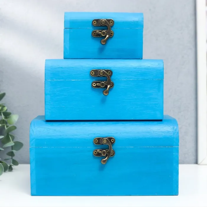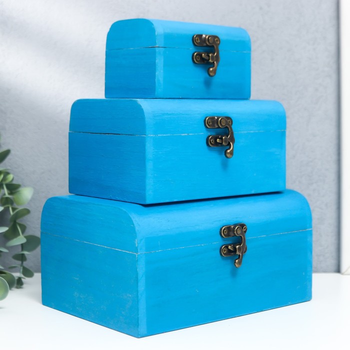 Набор шкатулок для украшений «Сундук. Сундучок», дерево, 3 шт., синяя — Характеристики