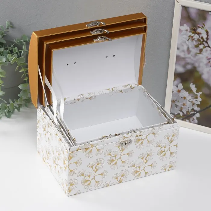 Набор шкатулок для украшений «Сундук. Узор золотом», картон, 3 шт. — Характеристики