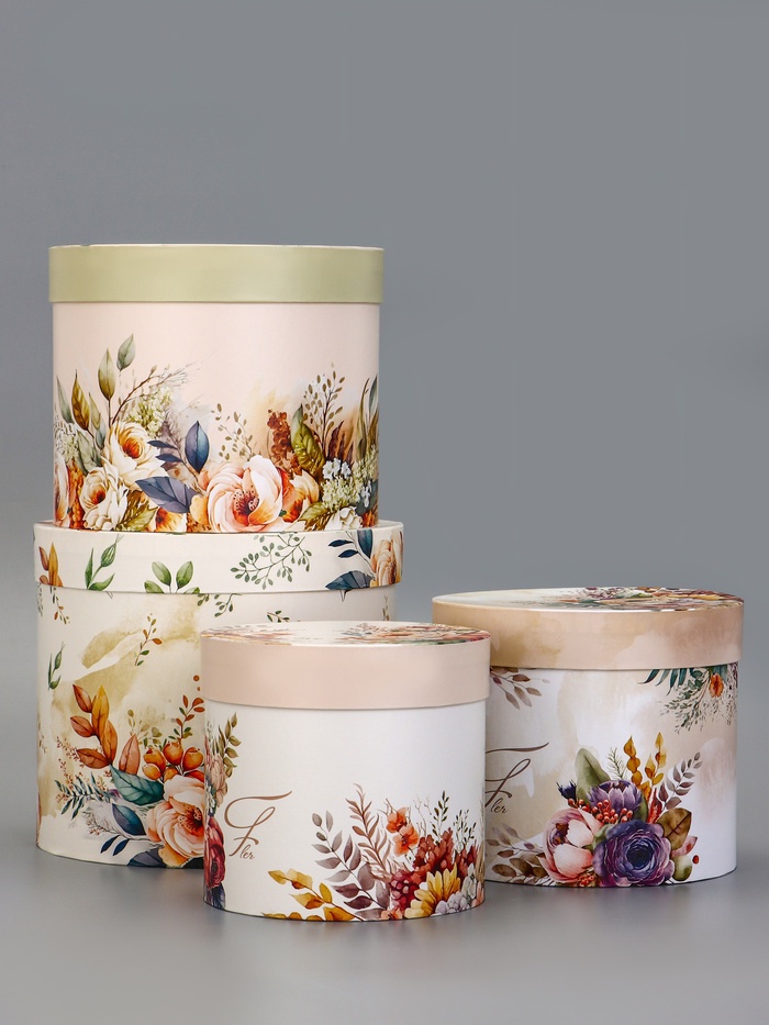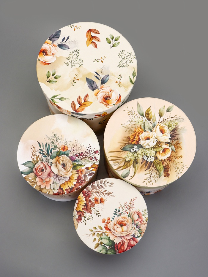 Набор шляпных коробок 4 в 1 "Пёстрые цветы" , 20 х 17,5 , 14 х 13 см — Характеристики