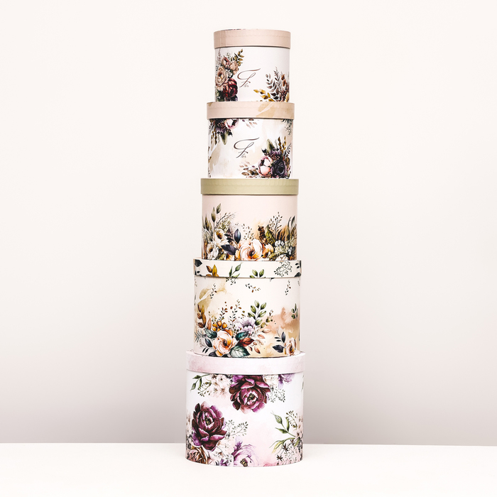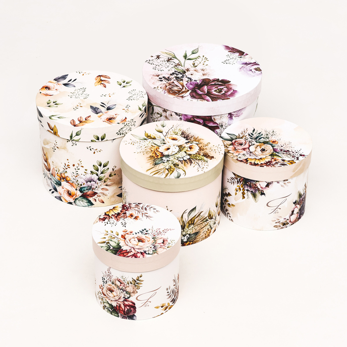 Набор шляпных коробок 5 в 1 «Пёстрые цветы», 22×19.5, 14×13 см — Характеристики