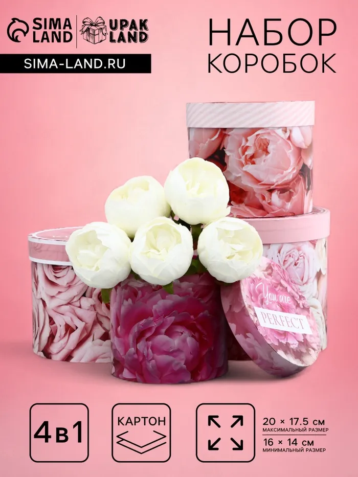 Не упустите возможность подарить радость своим близким — заказывайте набор шляпных коробок для цветов 4 в 1 и создавайте незабываемые моменты!