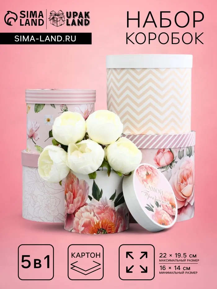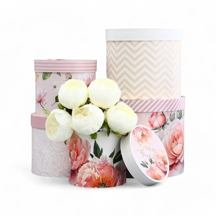 Не упустите возможность подарить радость своим близким — заказывайте набор шляпных коробок для цветов 5 в 1 и создавайте незабываемые моменты!