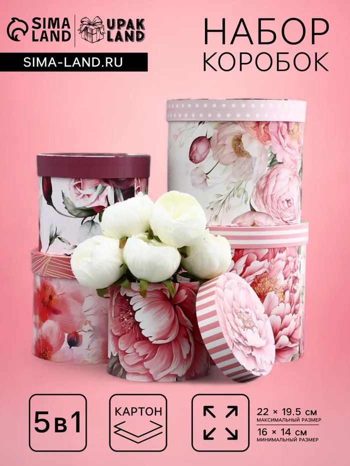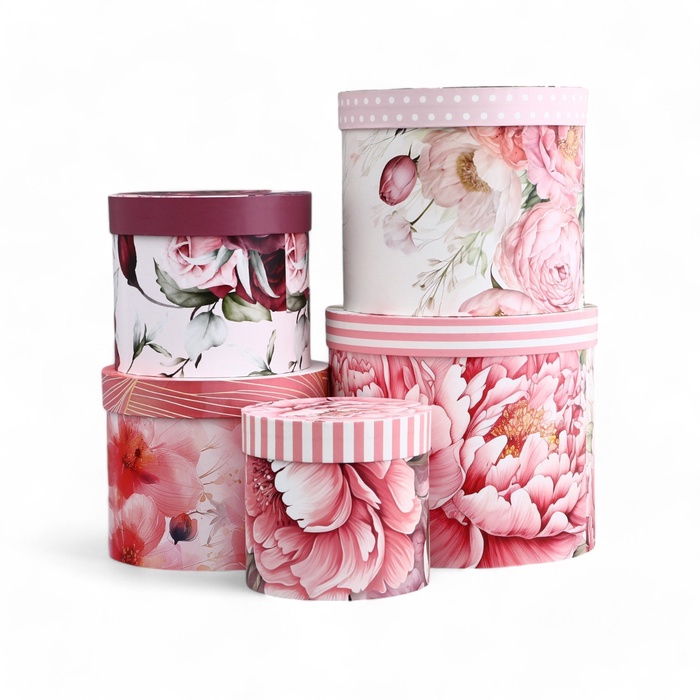 Не упустите возможность подарить радость своим близким — заказывайте набор шляпных коробок для цветов 5 в 1 и создавайте незабываемые моменты!