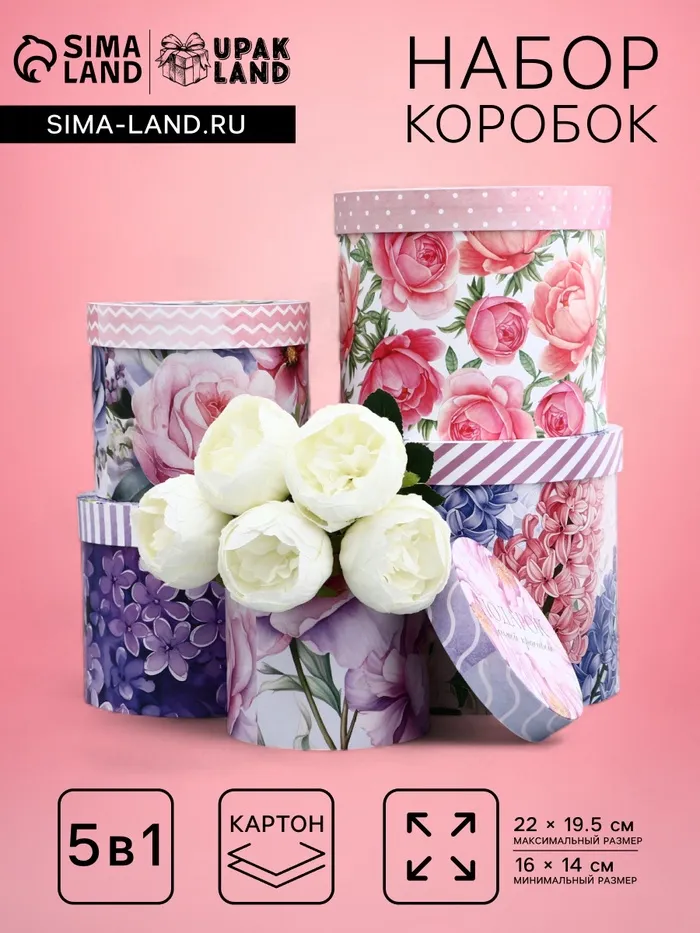 Не упустите возможность подарить радость своим близким — заказывайте набор шляпных коробок для цветов 5 в 1 и создавайте незабываемые моменты!