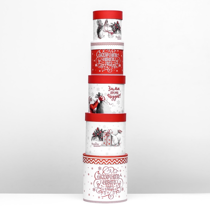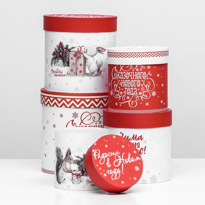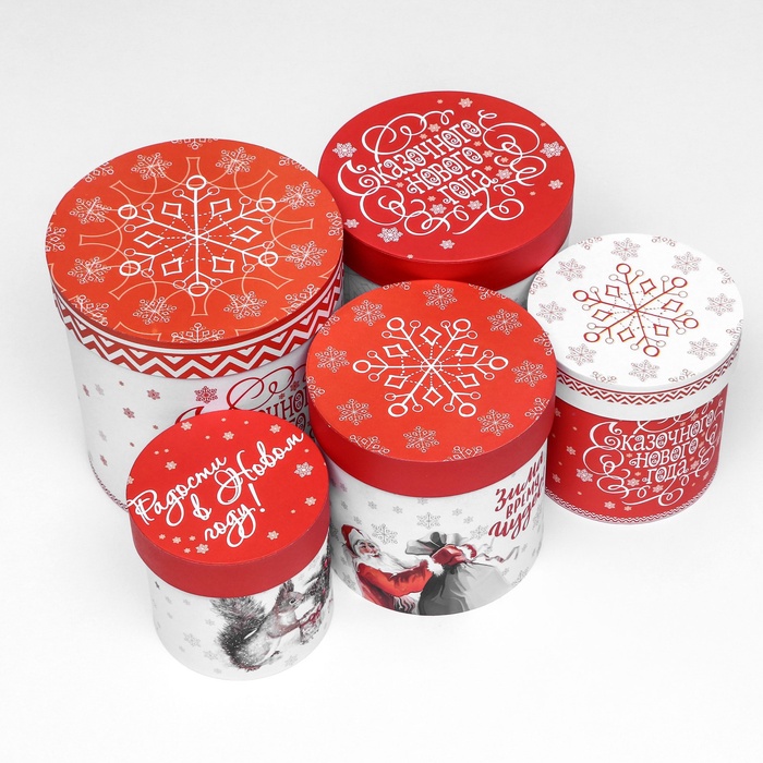 Набор шляпных новогодних коробок 5 в 1 «Зима время чудес», 23×23 — 15×15 см — Характеристики