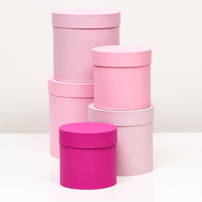 Набор шляпных подарочных коробок 5 в 1« Феерия» , розовый, 23×23 - 14×14 см — Характеристики