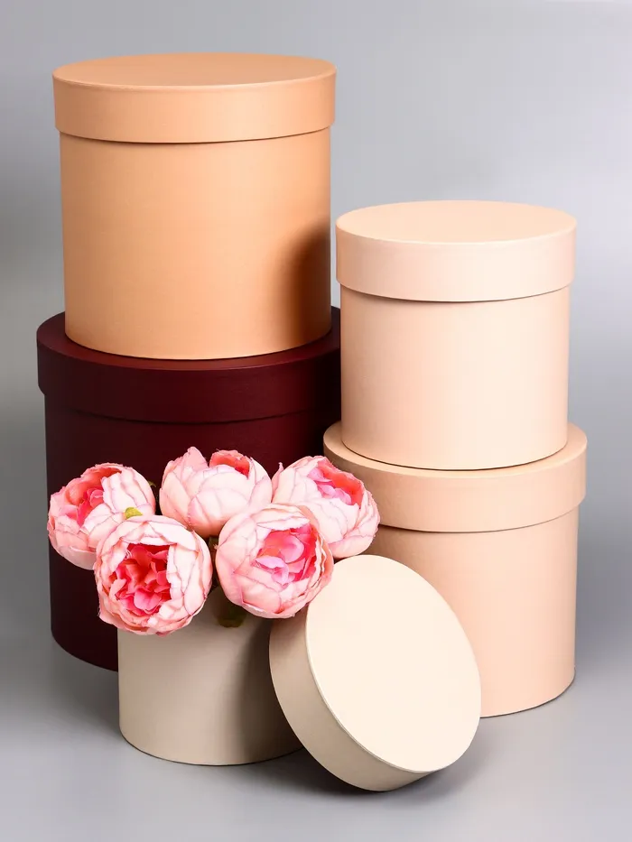 Набор шляпных подарочных коробок 5 в 1, коричневый, 23×23-14×14 см