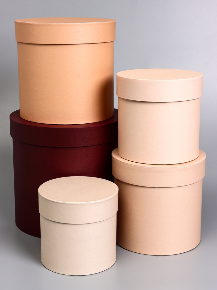 Набор шляпных подарочных коробок 5 в 1, коричневый, 23×23-14×14 см — Характеристики