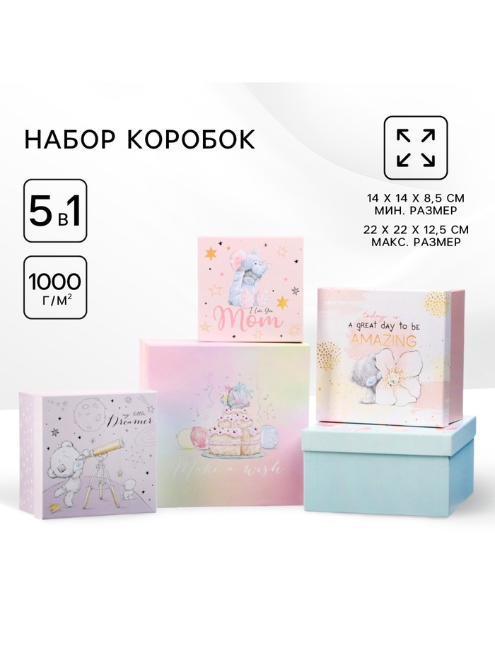Набор шляпных подарочных коробок 5 в 1 «Пудра»,20×20×20‒13.5×13.5×13.5 см — Характеристики