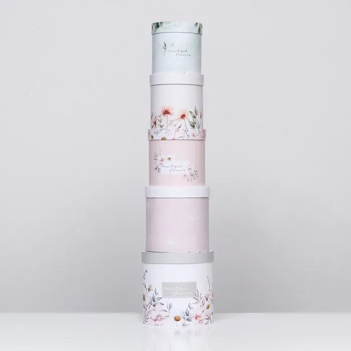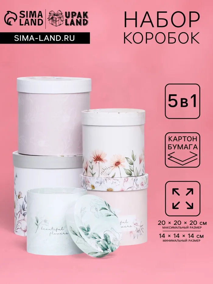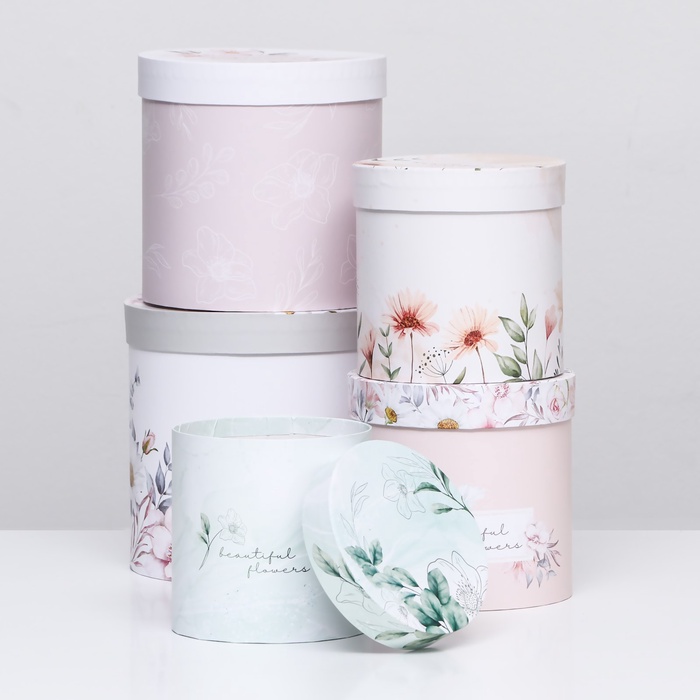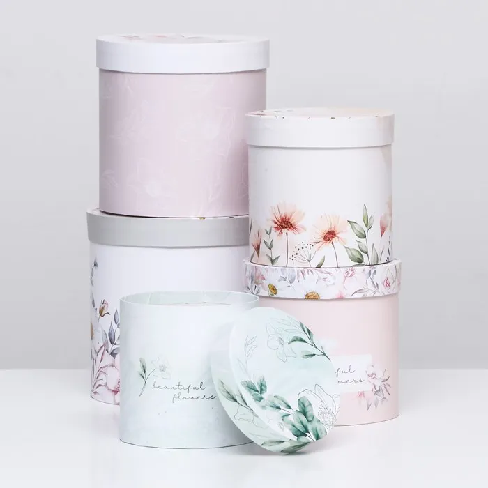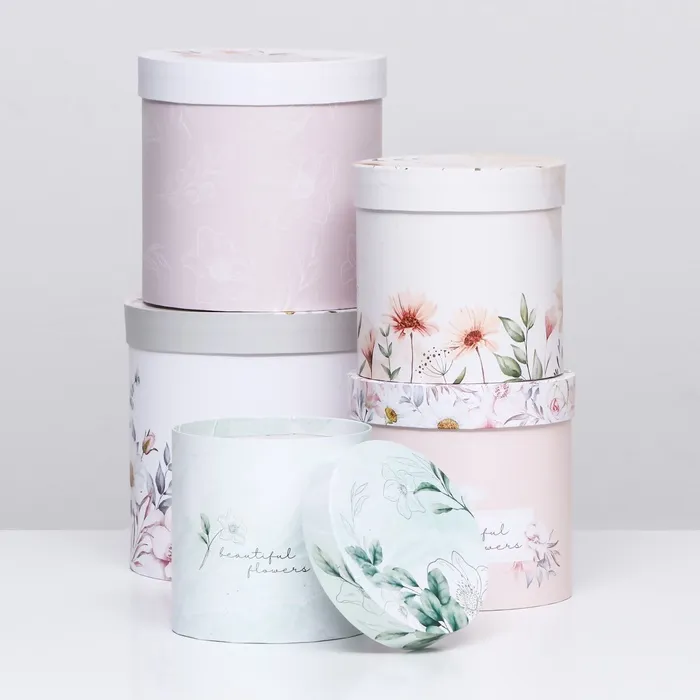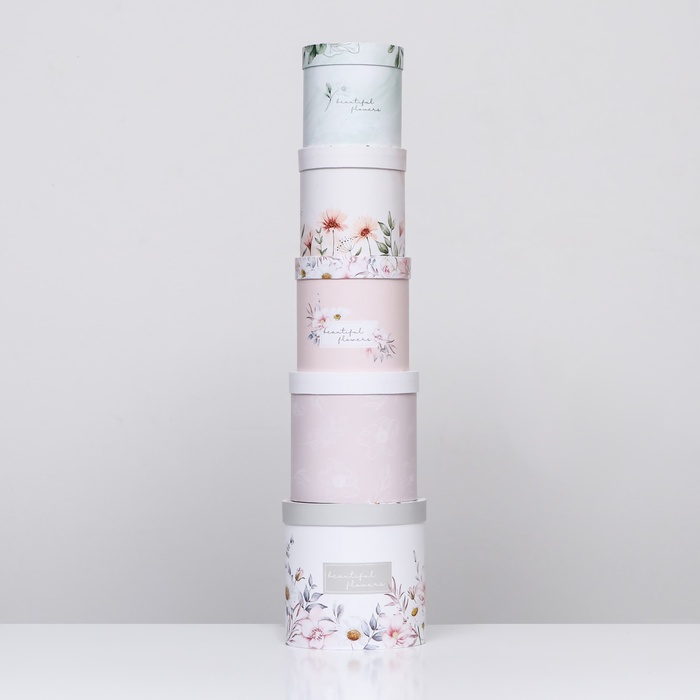 Набор шляпных подарочных коробок 5 в 1 «Цветочный», 20×20×20‒14×14×14 см — Характеристики