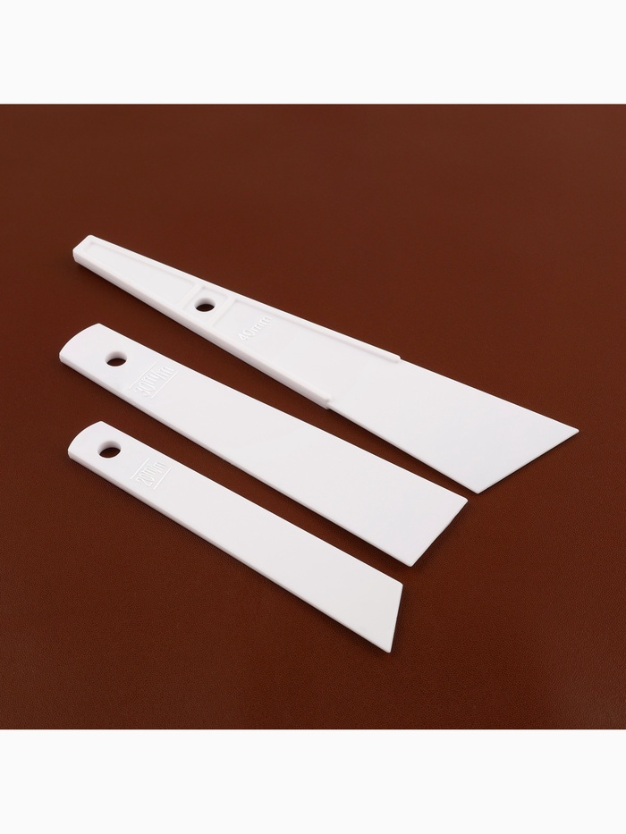 Шпатели пластиковые для клеевых работ с кожей и другими плотными материалами. Отлично подходят для нанесения химии, клея, токоноле и других средств на бахтарму.