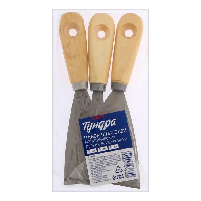 Набор шпателей ТУНДРА, деревянная рукоятка, 25-50-80 мм, 3 шт. — Характеристики