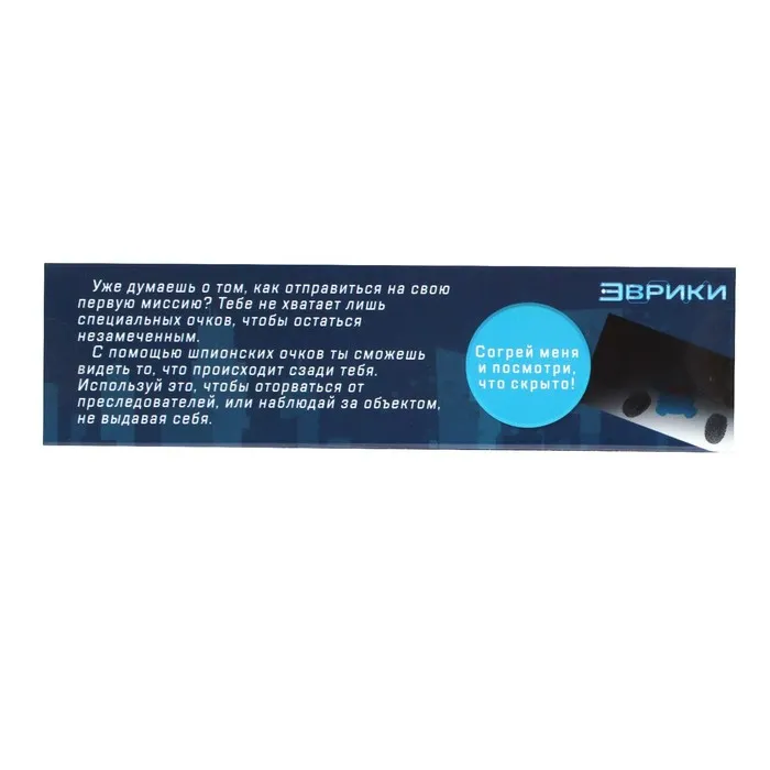 Набор «Секретная серия» — незаменим для реалистичных игр в шпиона. Специальные очки помогут следить за своей целью, оставаясь не замеченным!