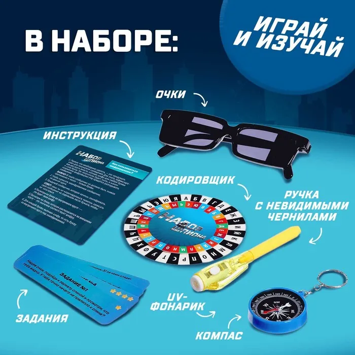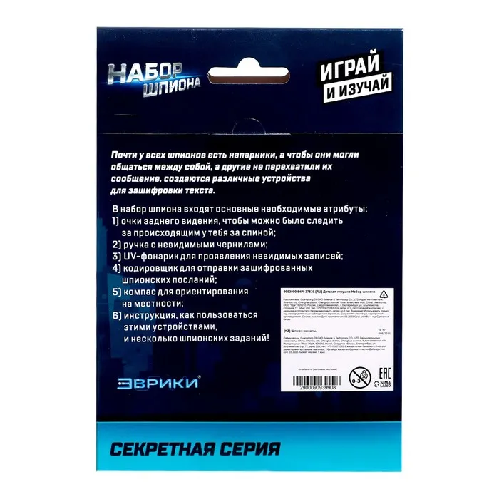 Набор шпиона «Секретная серия», очки заднего видения, шифровщик, компас и задания — Характеристики