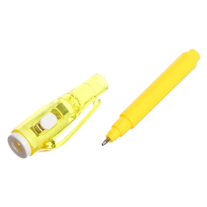 • В колпачок ручки встроен ультрафиолетовый фонарик, работает от 3 батареек типоразмера LR44 (в комплекте).