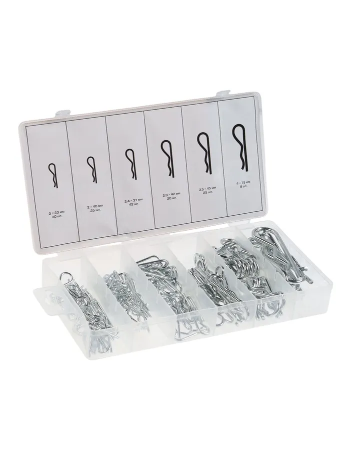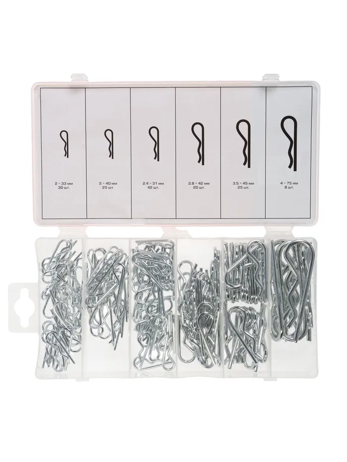 Надежно зафиксируйте любые соединения! Набор шплинтов «Тундра» (150 предметов) — это комплект металлических фиксаторов для предотвращения самопроизвольного откручивания гаек, болтов и осей. Набор обеспечивает безопасность и долговечность собранных механизмов.