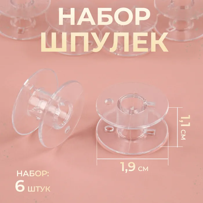 Набор шпулек, d=19 мм, 6 шт., прозрачный