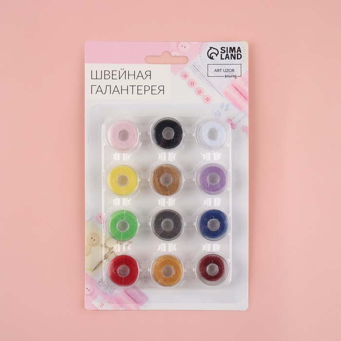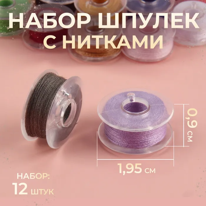Набор шпулек с нитками, d=19.5 мм, 12 шт., разноцветный — Характеристики
