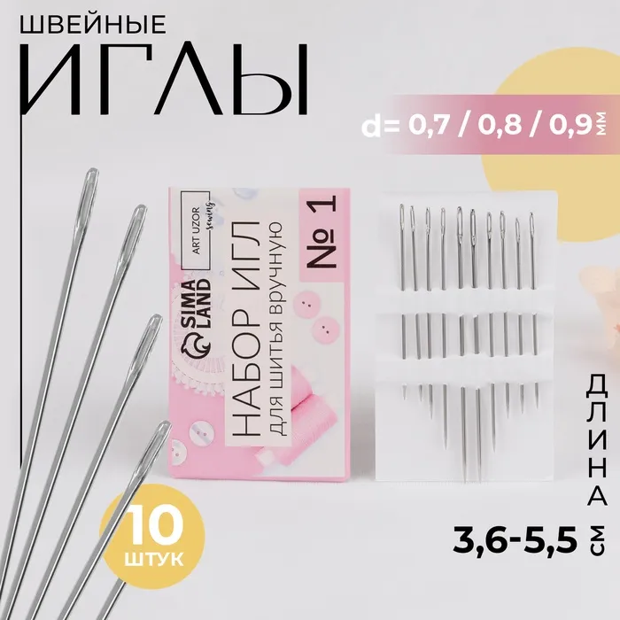 Набор швейных игл №1, d=0.7/0.8/0.9 мм, 3.6-5.5 см, 10 шт. — Характеристики
