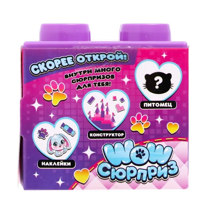 В наборе ребёнок найдёт милого питомца, конструктор и яркие наклейки. Соберите всю коллекцию сюрпризов!
