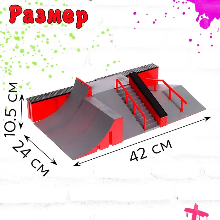 - Комплектация включает в себя комплекс трамплинами, лестницей и перилами, которые расширяют границы возможностей для трюков и маневров.